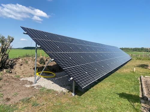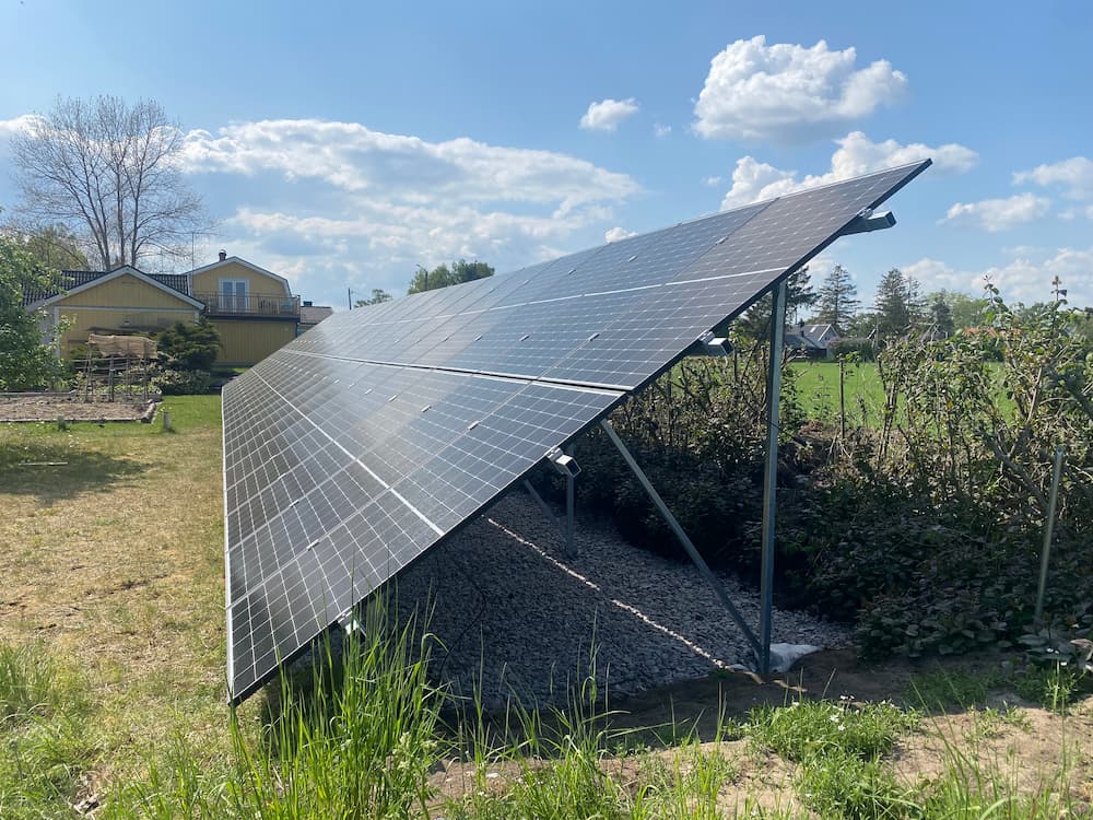 Anläggningseffekt: 15,2 kWp Paneler: 40 st svarta bifacial glas-glas monokristallina á 380 Wp/st Växelriktare: Huawei Sun2000 8+6 Lagring: Huawei Luna2000 Montagesystem: Tree System
