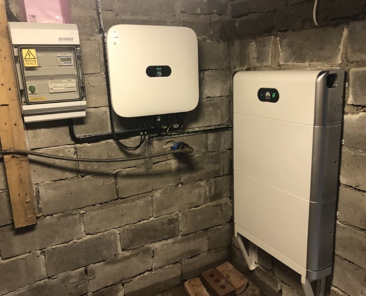 Anläggningseffekt: 11,5 kWp Paneler: 28 st helsvarta monokristallina á 410 Wp/st Växelriktare: Huawei Sun2000 10 kW Lagring: Huawei Luna2000 10 kWh Montagesystem: Weland