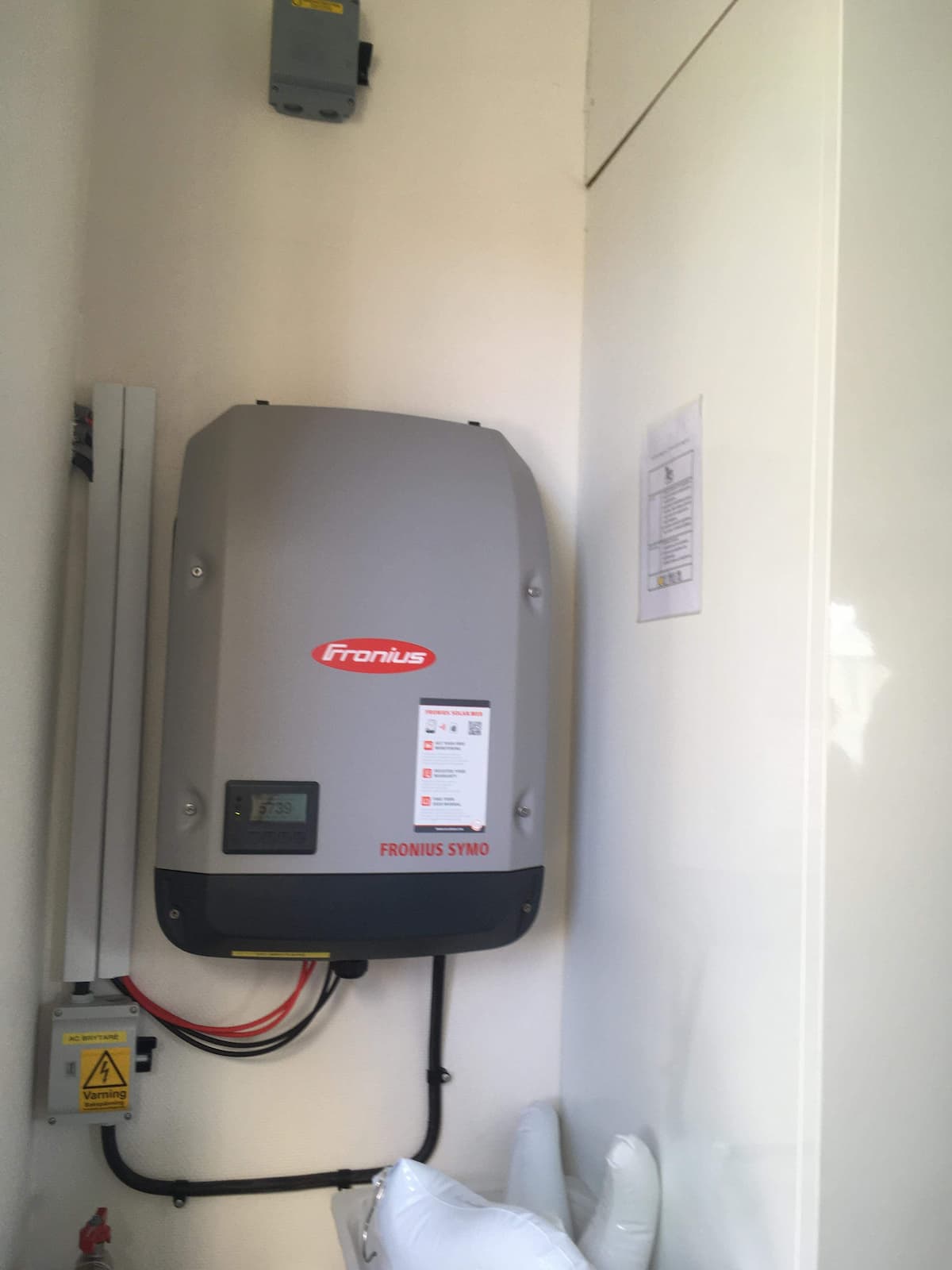 Anläggningseffekt: 9.4 kWp Solcellsmoduler: 28 st TrinaSolar TSM-DE06M.08 (svarta monokristallina med vit baksida och svart ram) Växelriktare: Fronius Symo Montagesystem: Esdec